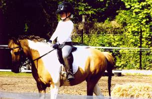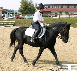 Egy szürke pónin kezdtem lovagolni, akit Lucifernek hívtak. Csak futószáron lehetett rajta ülni, mert másképp kezelhetetlen volt, nekiment a falnak. Nagyon NEM szerettem lovagolni járni, ezért a heti fél óra helyett hetente kétszer negyed órát ültem rajta. Utána évekig a Barbi nevű, tarka pónilovon lovagoltam.